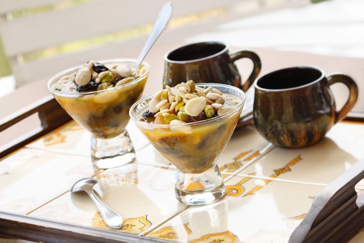 - يضاف عصير قمر الدين مع السكر إلى المكسرات، ويترك الخليط على نار هادئة جداً لمدّة نصف ساعة.