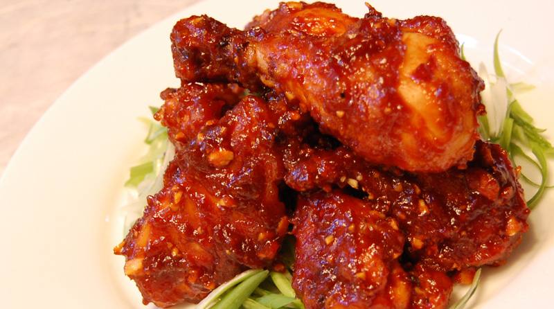 - تشوى قطع الدجاج على الفحم إلى أن يتحمر و ينضج.