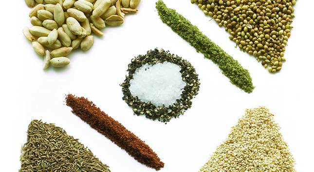 تُحمص بذور السمسم والفول السوداني وبذور الكزبرة والكمون، كل على حدة.