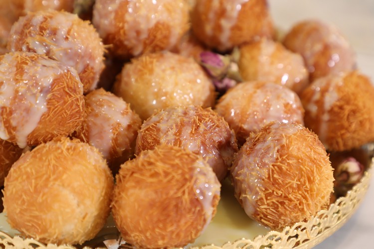 - شكلي العجينة المحشية على شكل كرات، ثم غمسيها بالحليب السائل، والشعيرية الباكستانية.