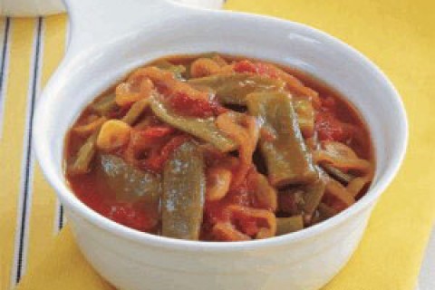 - يُسخّن زيت الزيتون في قدر متوسطة الحجم ويُقلّى البصل لمدة 3 دقائق أو حتى يصبح طريّاً. تُضاف اللوبيا الخضراء العريضة ويُحرَّك المزيج على نار متوسطة الحرارة لمدة 10 دقائق.