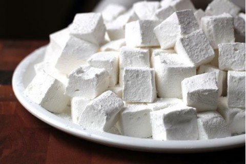 - نوزع فوق الصينية خليط المارشيملو ويفرد جيدا بها ثم يوزع على سطحة طبقة من النشا المخلوط بسكر البودرة.