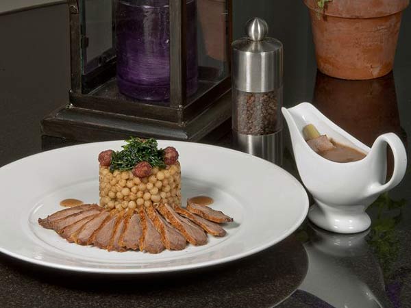 4. طريقة التقديم: تقدّم المغربيّة ساخنة، وتزيّن بشرائح لحم الموزات الغنم، وإلى جانبها الصلصة.