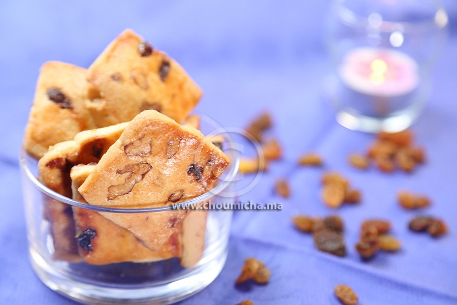 بسكويت مرمل بالجوز والعنب المجفف (الزبيب)