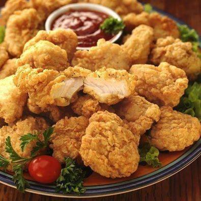 14. يُنشل بوب كورن الدجاج من الزيت، ويترك لدقائق على ورق المطبخ حتى يتخلص من الزيت الزائد، ثم يرص فى طبق التقديم ويقدم مع أنواع الصوص المختلفة .