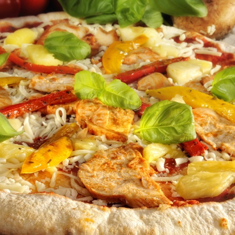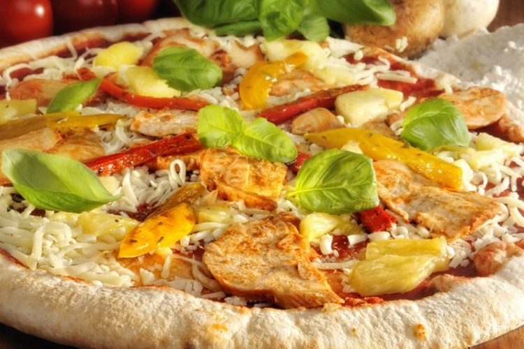 5. ادخلي الصينية للفرن على حرارة 180 درجة لمدة 15 دقيقة ثم قطعي البيتزا وقدميها ساخنة