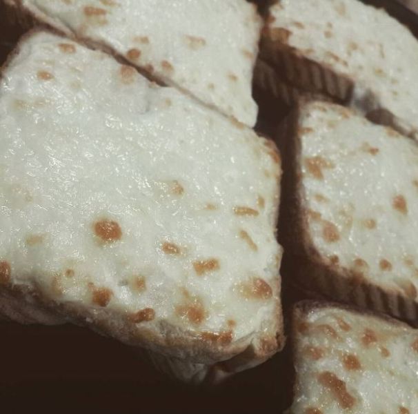 6) أدخلى التوست إلى الميكروويف على درجة حرارة متوسطة لمدة دقيقتين أو حتى تذوب الجبنة.