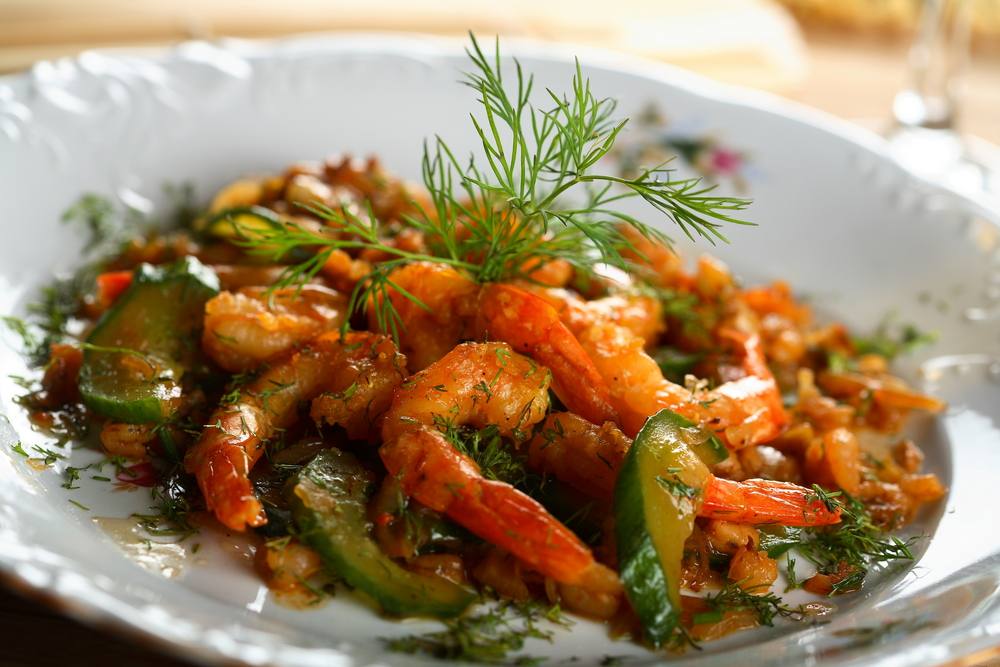- يغسل الجمبري بالماء البارد و يضاف إليه جميع المكونات ويقلب جيدا.
