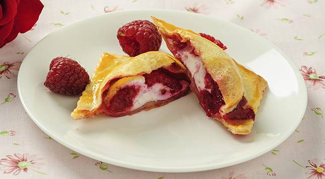 توضع 3 حبات من التوت الأحمر على وجه الريكوتا.