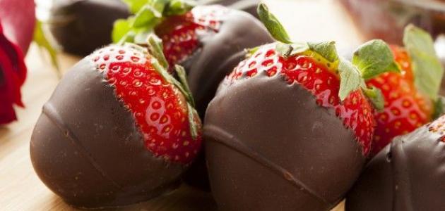 - نغمس كلّ حبّة من حبّات الفراولة بالشوكولاته البيضاء، ثمّ نضع بعد ذلك الشوكولاته السوداء، ونحفظها في الثلاجة إلى أن تبرد وتجمد، حيث يجب أن تقدّم هذه الحلوى وهي باردة، ومن الممكن أيضاً تزيينها بأنواع مختلفة من المكسّرات المطحونة إذ يضفي عليها ذلك مذاقاً طيباً، كما أنّه من الممكن استعمالها نفسها كزينة لأنواع أخرى من الحلويّات مثل الكيكات المختلفة.