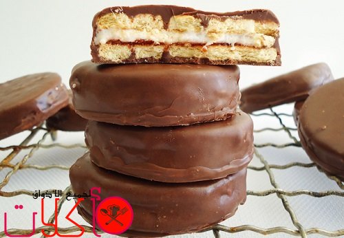 حلى المارشميلو بالشوكولاته بسكويت هش مغطس بالشوكولاتة اللذيذة مع حشوة من المارشميللو ومربى التوت، حلى المارشميلو بالشوكولاته حلوى شهية قدميها لأصدقائك مع فنجان من القهوة .