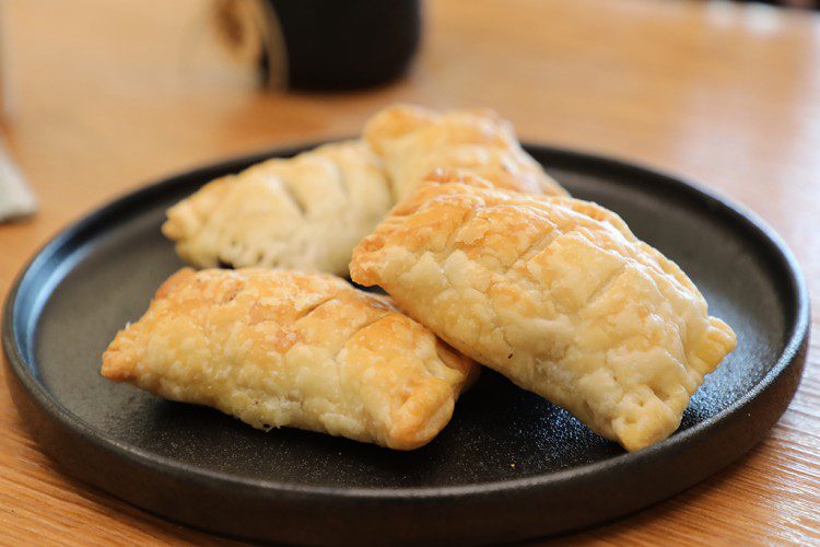 - أحكمي إغلاق العجينة بالضغط على أطراف العجينة عبر استخدام أطراف الشوكة، ثم أحدثي بعض الخطوط على وجه العجينة المحشية باستخدام سكين حادة.