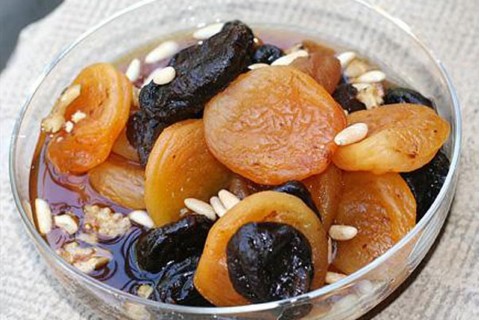 - قبل التقديم بساعتين يضاف القراصيا والمشمشية والزبيب ، حتي تكون متماسكة .