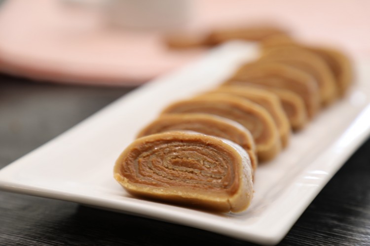 - وزعي زبدة اللوتس على العجينة الممدودة ثم لفيها رول بورق الزبدة وضعيها بالفريزر لمدة ساعة على الأقل.