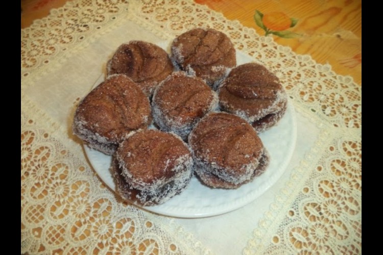 2. ثم شكلي منها كريات صغيرة بحجم 25غ للواحدة إبسطيها قليلا براحة اليد وغطسي وجهها في السكر العادي ثم بواسطة كوب شاي ضعي عليها شقوق بشكل دائري كما في الصورة و أعيدي غمسها في السكر بشكل خفيف.