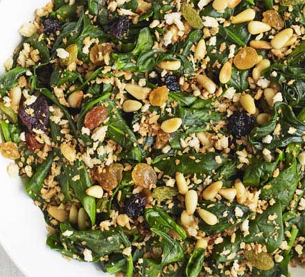 سبانخ بالزيت والصنوبر