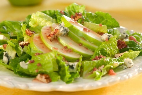 - نضيف قطع التفاح و الخس الى الصلصة ويزين بالبقدونس.