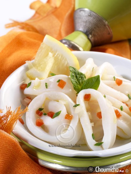 - للإفادة : لا يجب طهي خواتم الحبار كثيرا حتى لا تصبح مطاطية.