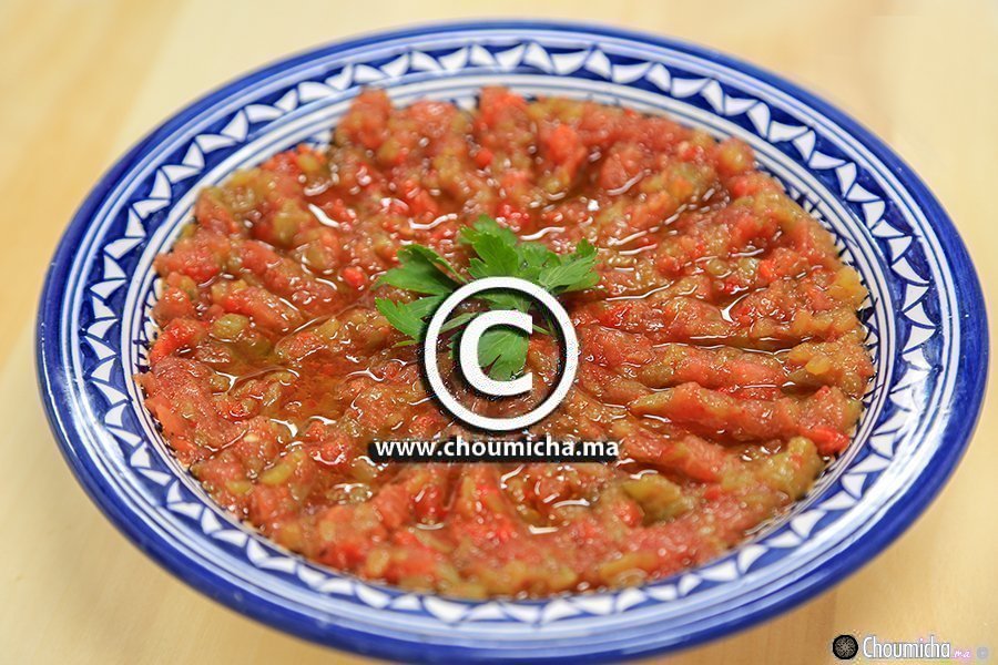 - تشوى الطماطم، الفلفل والفلفل الحار. تقشر الخضر وتزال لها البذور.