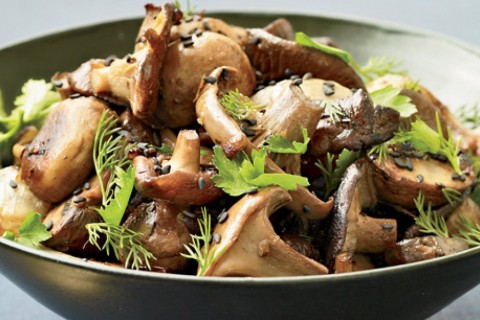 - يصب خليط الليمون والزيت فوق المشروم ويقلب جيدا ثم ينثر عليها حبة البركة ويقدم . بالهنا والشفا.