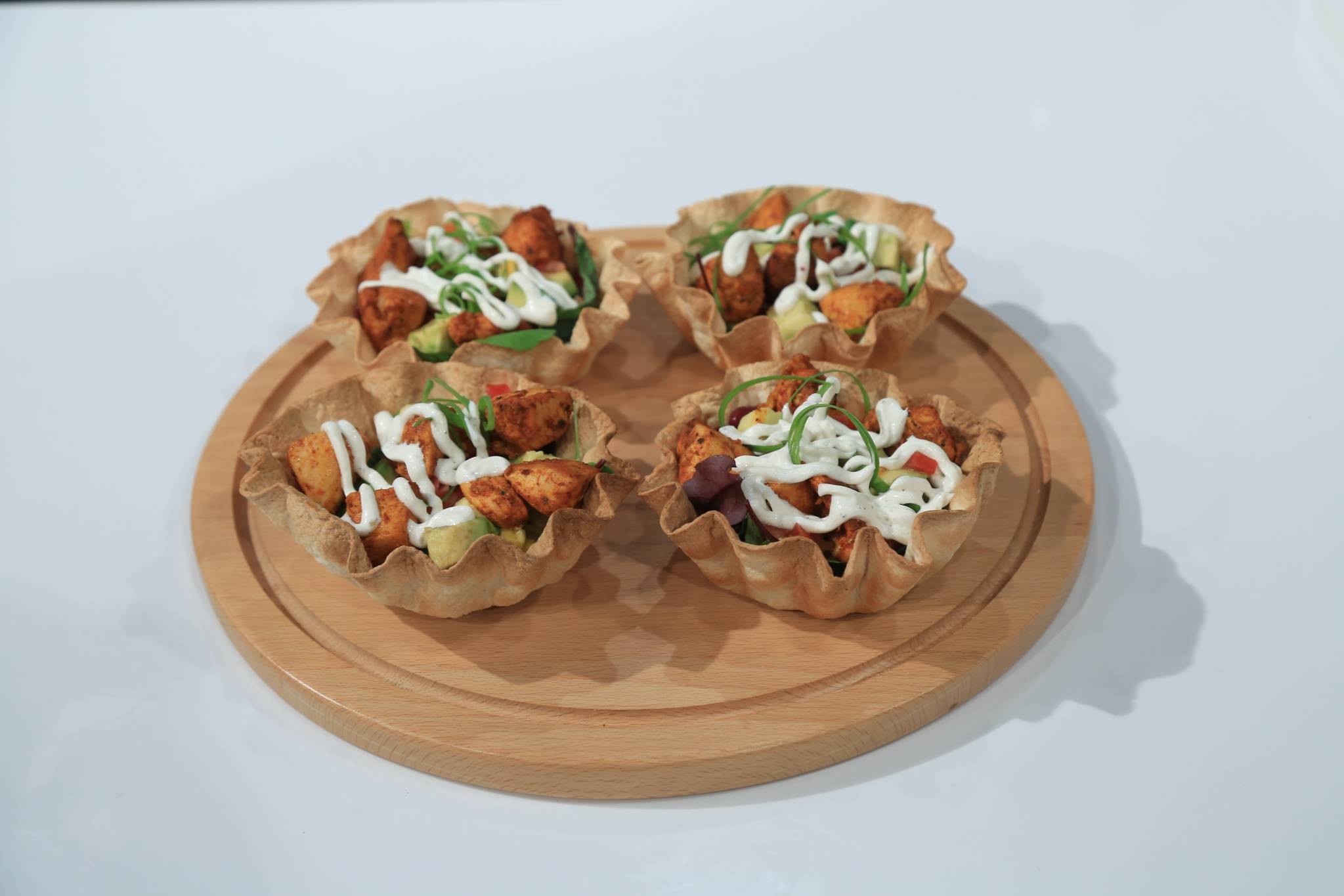أضيفي الدجاج وقدميهم بقوالب التورتيلا مع صلصة الرانش.