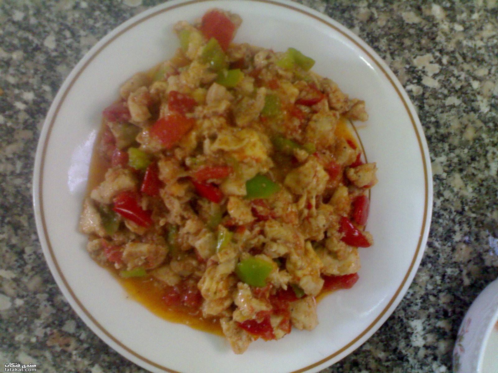 ٢. يضاف الثوم والفلفل الأخضر المقطع إلى الفراخ ويقلب كويس