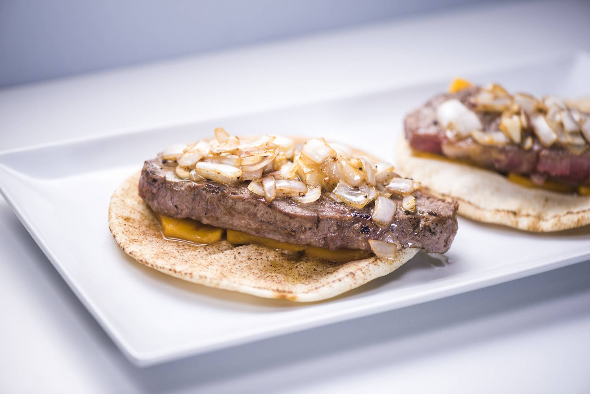 شرائح اللحم مع خبز البيتا وجبنة الشيدر