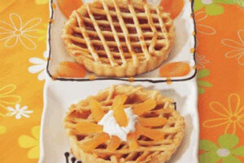 - تُرص الكميّة المتبقية في قالبٍ مدور للخبز 28 سم. ثم تُمرغ طبقة من مربى المشمش بشكلٍ متجانسٍ فوق العجينة.