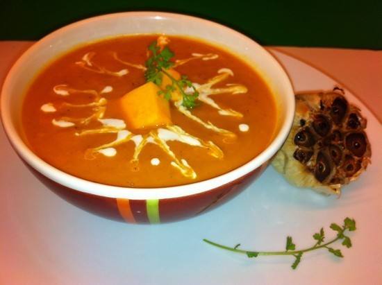 3. ضيفي المرق،البطاطس،القرع،الملح الفلفل قلبي،اتركيه على نار متوسطة إلى أن يغلي ، اتركي الشوربة تطهى بهدوء لبضع دقائق، ضيفي الكريمة ثم تقدم.