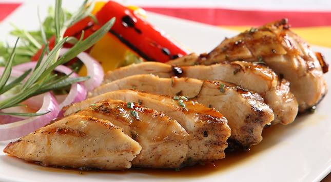 تُخلط جميع المكونات معًا جيدًا ، في ما عدا صدور الدجاج.