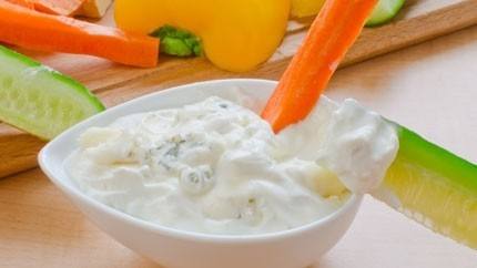 - تمزج الكريمة ، المايونيز، البصل، عصير الليمون في وعاء جيدا.