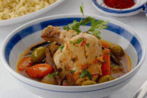 - يُسخّن زيت الزيتون في قدر كبيرة غير لاصقة. تُقلّى أكواز البصل الصغيرة إلى أن يتبدّل لونها، ومن ثمّ تُضاف الدجاجة وتطبخ لمدّة 5 دقائق. يُضاف إليها مسحوق الزنجبيل، الفلفل الأبيض، البقدونس، الكزبرة، الطماطم وعودا القرفة. يتمّ تحريكها على حرارةٍ متوسّطة لمدّة