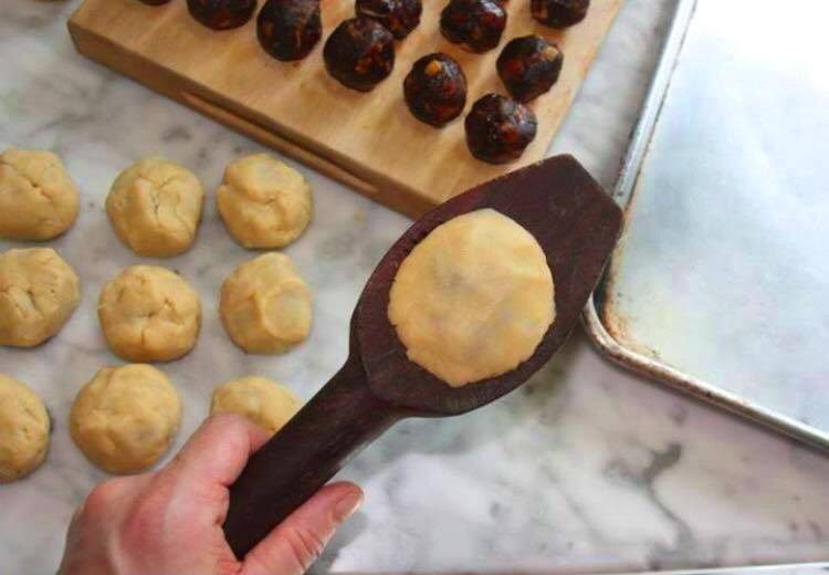 - عجينة المعمول المصنوعة بالسميد والطحين هي الاسهل في تحضير حبات المعمول لان السميد يسمح بدخول الهواء بين القالب وحبة المعمول.