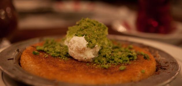 - يُسكب القطر على الكنافة ويمكن تزيينها ببعض المكسرات، وتكون جاهزة للتقديم.