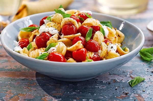 الباستا بالخضار والجبن ، أحياناً تكون أفضل الوجبات وأطيبها مذاقاً هي البسيطة وسهلة التحضير، ومثال على ذلك هذه الباستا المكونة من الطماطم ذات اللون الرائع والريحان وجبنة بوراتا التي هي مزيج من جبنة الموزاريلا والكريمة الشهية .