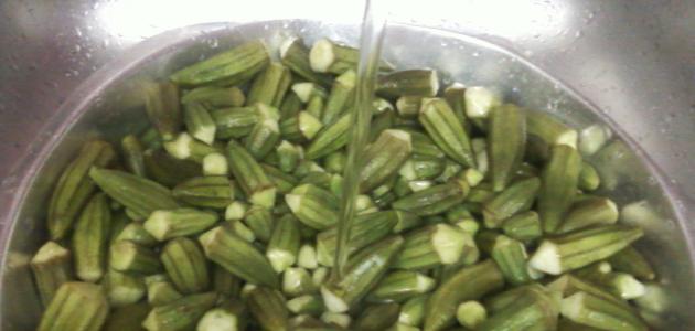 - نُصفّي البامية من الماء الساخن ونضعها في الماء المثلّج (حتى نحافظ على لونها الأخضر).