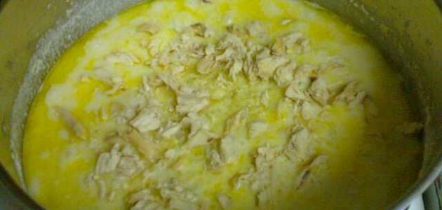 - نغسل الجريش جيداً عدة مرات، مع نقعه في الماء الدافئ مدة خمس عشرة دقيقة، ثمّ نصفّيه من ماء النقع، ونضيفه إلى القدر، ونقلبه قليلاً.