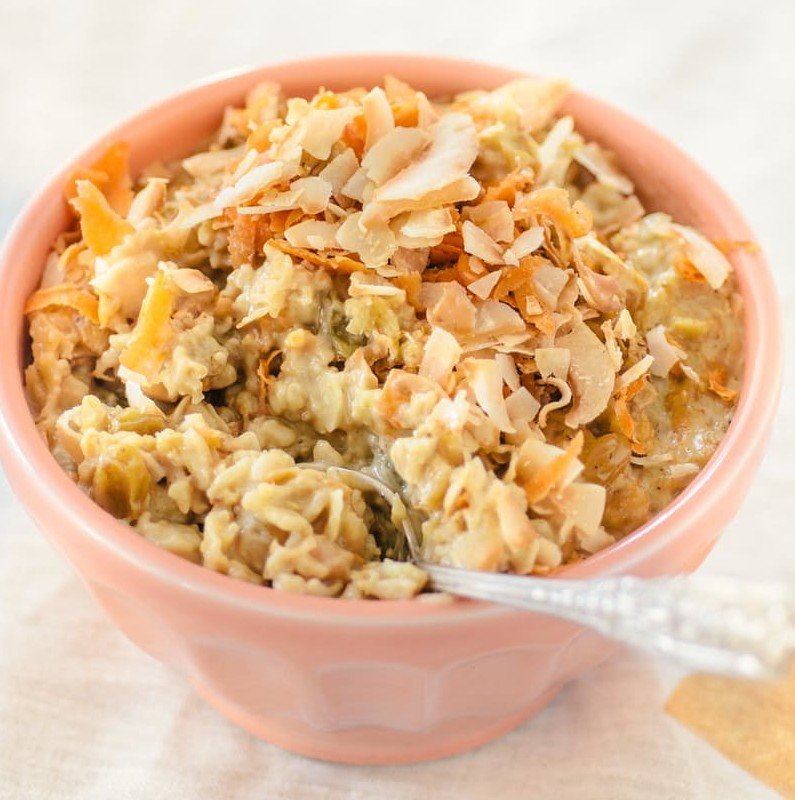 حلى الشوفان وجوز الهند وجبة افطار شهية، غنية، حلوة ولذيذة لاستفتاح اليوم بها، تتكون من الشوفان المغذي، مع الجزر المبشور، التوابل، حليب جوز الهند، وجوز الهند غير المحلى، عصير القيقب الحلو ،حلى الشوفان وجوز الهند من وصفات الشوفان المميزة .