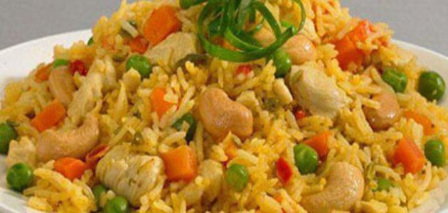 * يُضاف قرن الفلفل ويُقلّب مع البصل، ثمّ تتم إضافة الملح، والكاري، والكركم، والثوم، ثمّ يضاف مرق الدجاج إلى أن يغلي، وبعدها يضاف الأرز بعد غسله جيّداً، ويُترك لمدّة نصف ساعة على نارٍ هادئة.