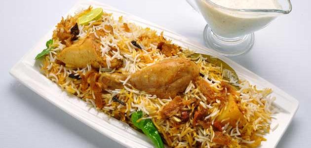 - نفرد الأرز في صحن التقديم، ثمّ نُوزّع قطع الدجاج فوقه.