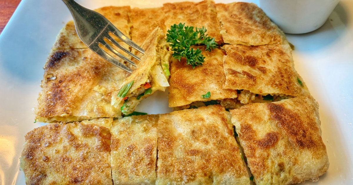 7- سخّني مقلاة غير لاصقة على نار متوسطة. اطهي قطع المطبق واحدة تلو الأخرى حتى تتحمّر من الجهتين، على أن تدهنيها بالزيت النباتي خلال الطهي.