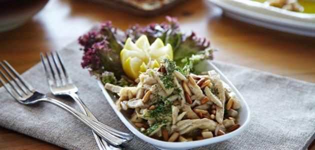 - وضع الزيت في مقلاة وتسخينه ثم إضافة الثوم والتقليب ليصبح ذهبي اللون، إضافة الكزبرة والتقليب لتذبل ثم سكب التقلية على الشيشبرك وتزيين الطبق بالصنوبر.