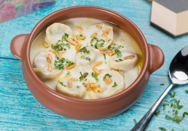 - نضع القطع في صينية الفرن و نشويهم قليلاً و يمكن قليهم او سلقهم و من ثم اسقاطهم في اللبن المطبوخ و يقدم الطبق مع تزيينه بالكزبرة المطبوخة مع الثوم و الصنوبر .
