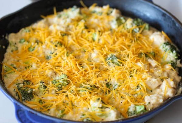 البروكلي بالدجاج والجبن ، طبق غني شهي مليء بالمكونات الغذائية، يتكون من البروكلي، حبوب الكينوا، قطع الدجاج، البصل، الثوم، المايونيز، جبنة البارمجيان وجبنة الشيدر.