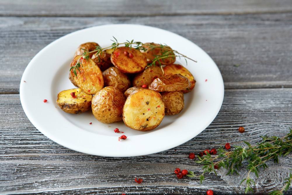 - تضاف حبات البطاطس، وتقلب جيداً حتى تغطيها الأعشاب.