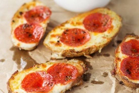 - ضعي داخل حبة البطاطس قليل من صوص البيتزا ثم البيبروني ثم الجبنة الموزاريلا ورشة أوريغانو .