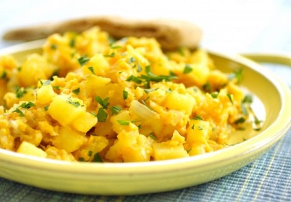 - ضعي 2 ملعقة طعام زيت في المقلاه واقلي البيض. أضيفي الملح والفلفل حسب الرغبة. حافظي عليه ساخنا إلى أن تجهز البطاطا.