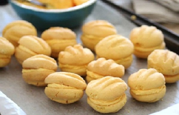 - نحشو كل قطعتي كوكيز بحشوة الكاسترد التي حضرناها ثم نقدمها .