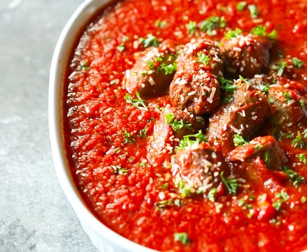السجق بالصلصة ، وصفة غنية بالنكهات والطماطم والتوابل المتنوعة ويمكن استخدامها كصلصة فوق السباغيتي أو النودلز أو مع البطاطا المهروسة فهي رائعة وشهية مع جميع الوصفات .
