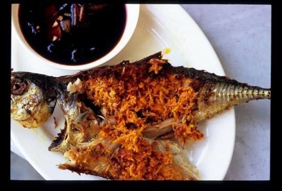 - و يقدم طبق السمك المحشي بالارز و الزيتون .